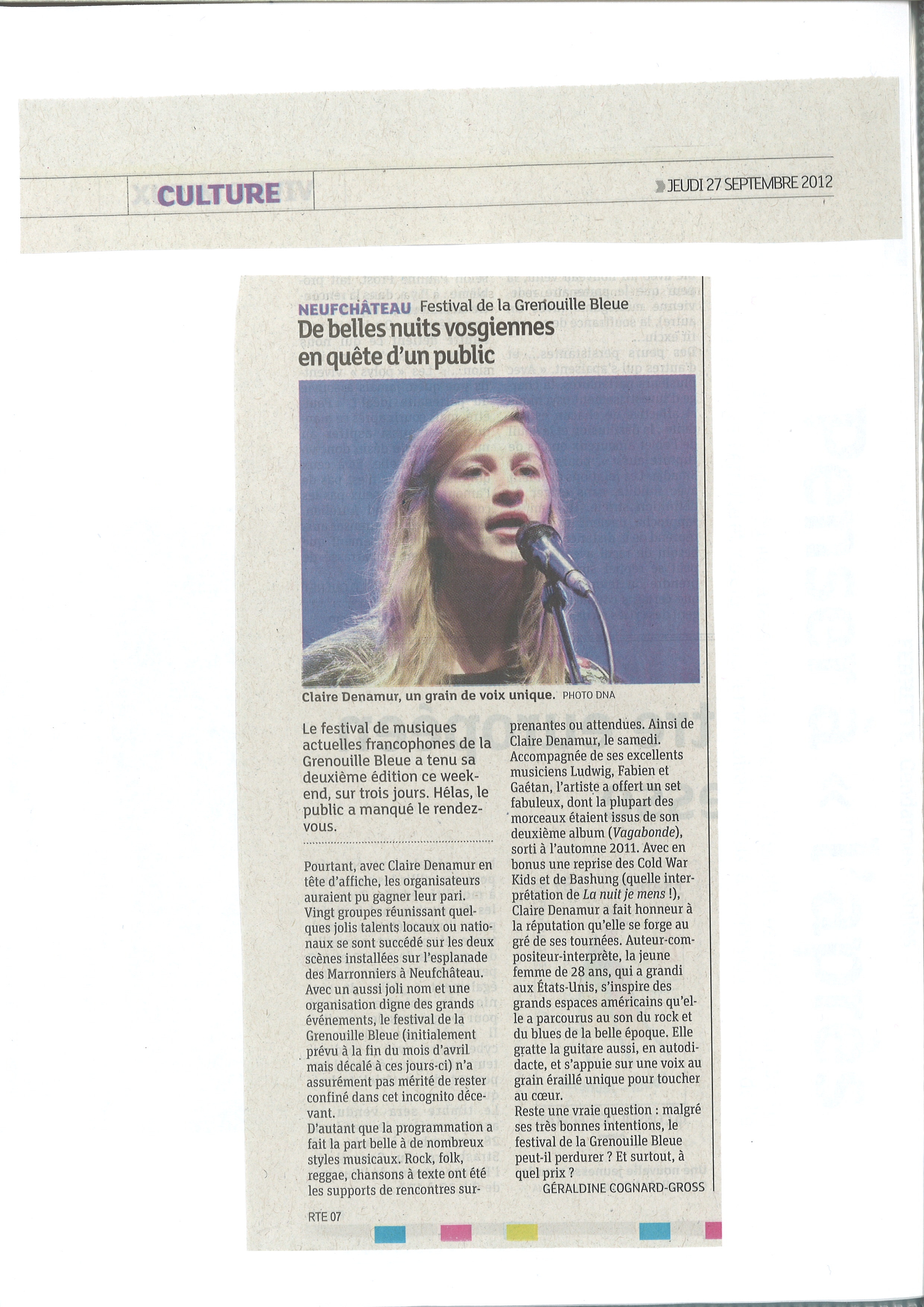 Les dernieres nouvelles d’Alsace à propos du festival « la grenouille bleue » 27 Septembre 2012